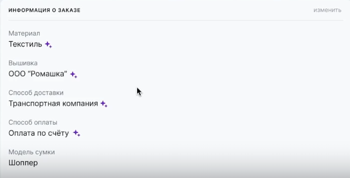 Поля, которые заполнил ИИ помечаются иконкой в виде «звёздочек».