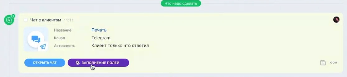 3. Автозаполнение полей карточки CRM из звонка и чата